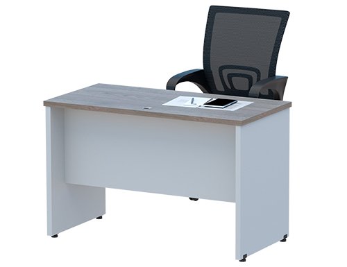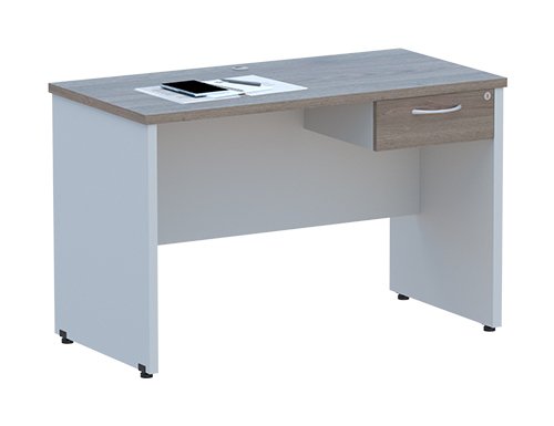 Medidas: Escritorio principal recto de 1.20 x 0.60 x 0.75 m cuenta con 1 cajón papelero, cerradura general, grommet pasacables giratorio y niveladores de piso.
