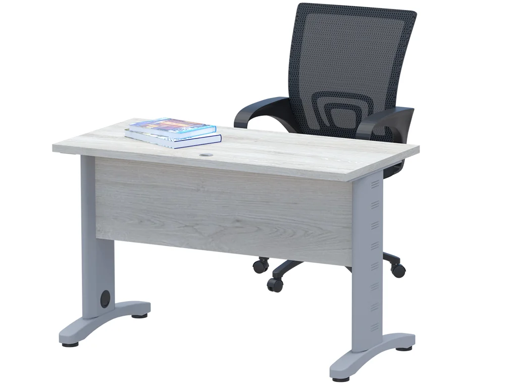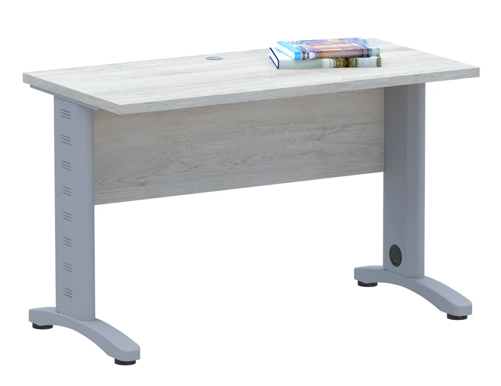 Medidas: Escritorio recto de 1.20 x 0.60 x 0.75 m cuenta con grommet pasacables giratorio y niveladores de piso.